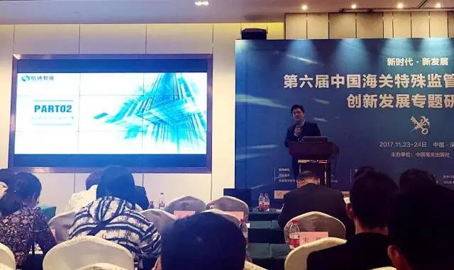11月24日下午,為期2天的第六屆中國海關(guān)特殊監(jiān)管區(qū)域創(chuàng)新監(jiān)管新模式專題研討會完成各項議程,正式落下帷幕。本次大會由海關(guān)出版社主辦,旨在圍繞合作、共融與新發(fā)展的主題思想,推進海關(guān)跨部門協(xié)同合作,打造大通關(guān)一體化管理格局。深圳市航通智能技術(shù)有限公司銷售副總經(jīng)理汪建軍與會并發(fā)表專題演講。